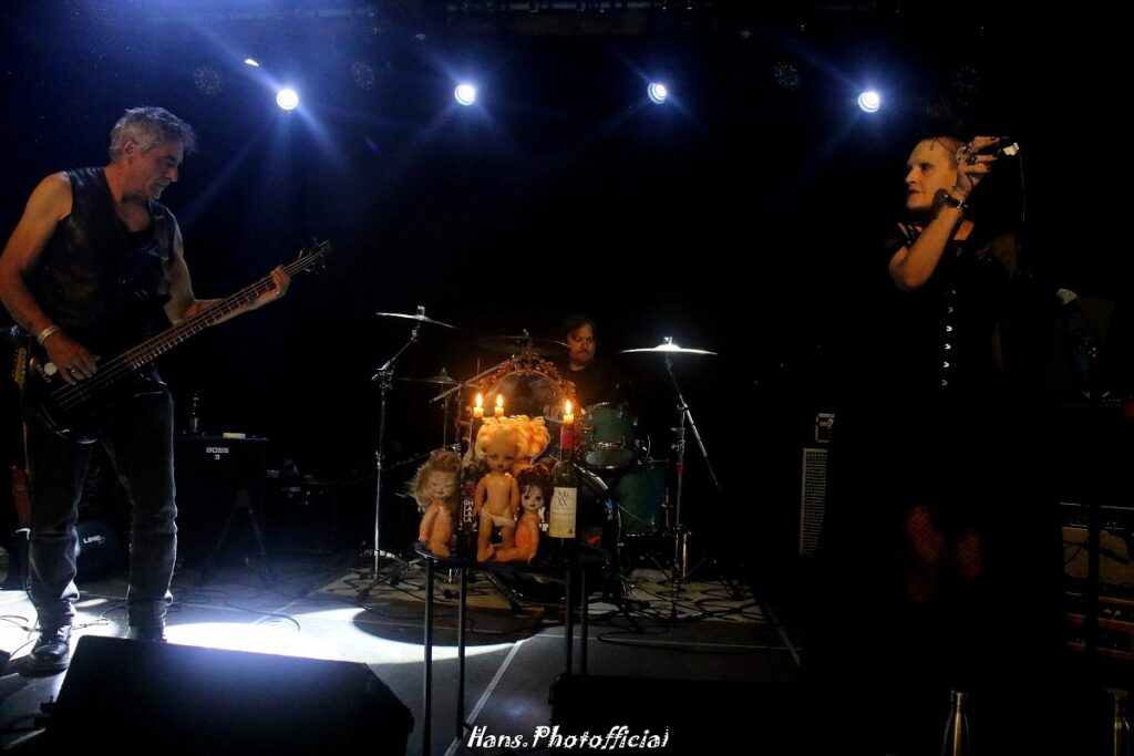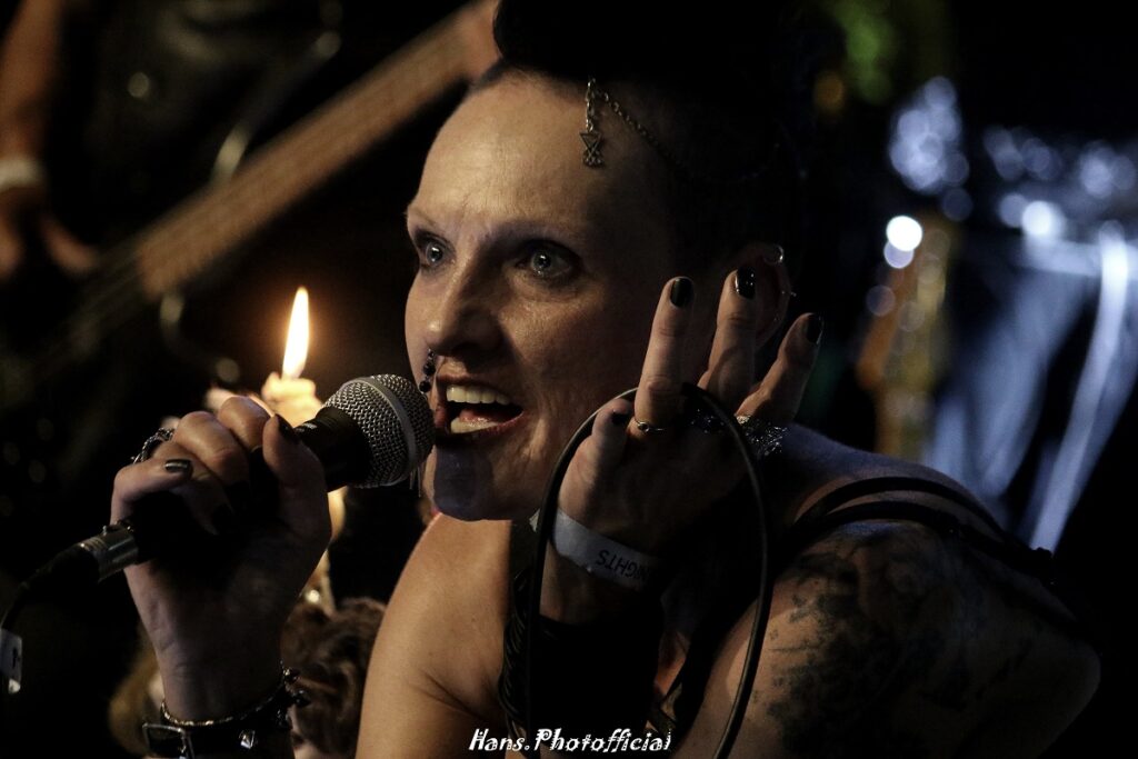 De opener van dienst kwam uit het Vlaamse land. N.E.L. & JP mochten met grote dadingsdrang de nog schaars bevolkte zaal angstzweet bezorgen eerder dan zonzweet. “This is definitely a dark t-shirt fest”. De enige kleur in de zaal was een direct gevolg van warme vlammetjes rond de naakte gothic poppetjes van de huidhongerige Nel Mertens, de Vlaamse Koningin van Hanenkamland.