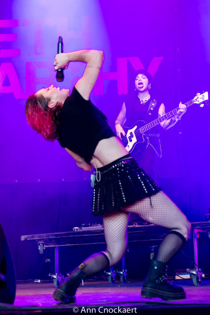 Beth McCarthy, we hadden er nog nooit van gehoord, maar dat komt wellicht omdat we niet smachten naar artiesten die willen doen wat Avril Lavigne jaren geleden deed. Nu ja, volgens het programmaboekje heeft de Britse reeds meer dan 25 miljoen streams verzameld en is ze een ster op TikTok. Voor ons liever echte sterren zoals Feeder.