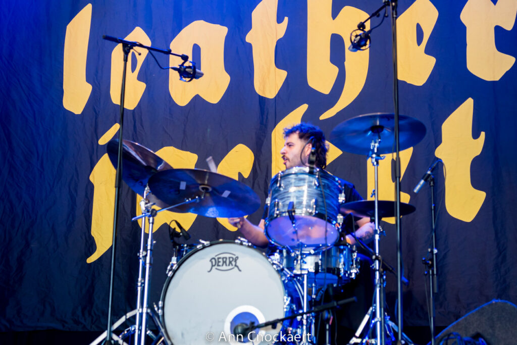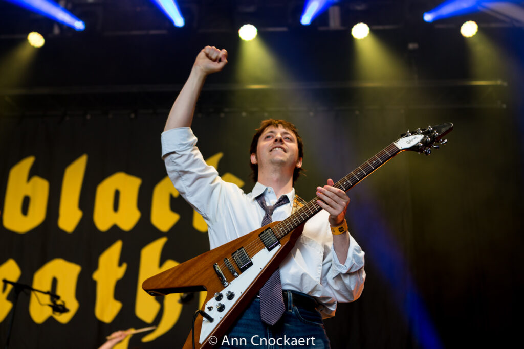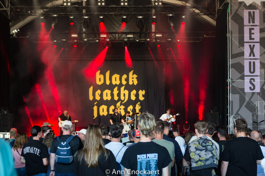 Het Antwerpse Black Leather Jacket dus. Met groot gemak – of beter gezegd met de juiste songs en sound – slaagden ze erin om een moshpit te veroorzaken. Rock-‘n-roll, maar wel van het soort dat glampop uit de jaren 70 prachtig combineert met het Ramones-principe. Rammen, maar melodieus rammen, want zowat ieder nummer is niet alleen een gedroomde meebruller, maar ook een song die in je hoofd blijft nazinderen. Zoals te verwachten bestond het merendeel van de set uit hun laatste muilpeer The Rush. Eerste hoogtepunt van de dag? Wie weet zelfs hét hoogtepunt…