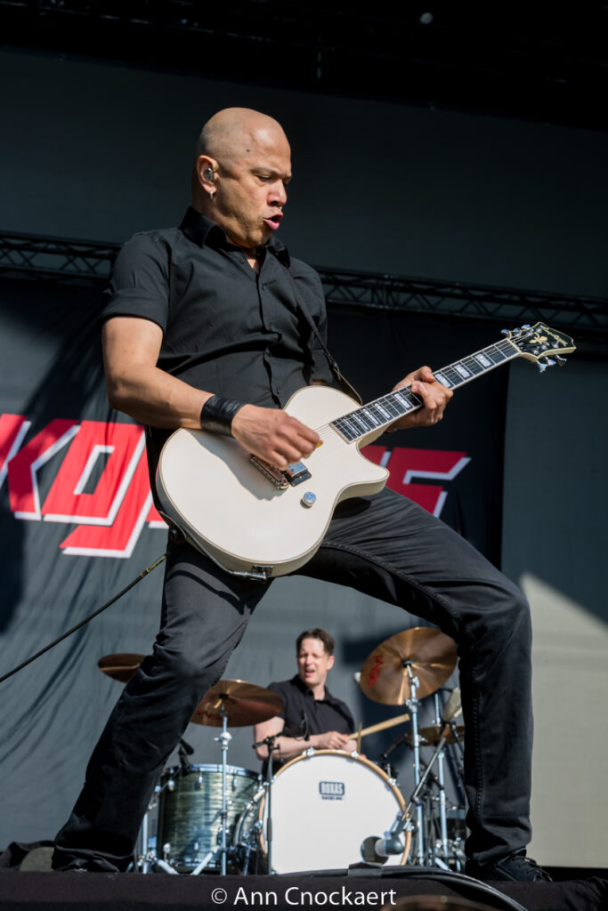Vestrock is ook altijd een beetje goed gemeende nostalgie. Bands waarvan je vaak denkt: “Bestaan die nog?” En ja, Danko Jones bestaat nog en het was duidelijk dat de Canadezen een heleboel fans hadden meegebracht. Danko Jones, zo heet ook de zanger, had er ongelofelijk veel zin in en ook al is het principe eenvoudig – metalpop die je meezingt ook al ken je met moeite de songs – liet de molen op volle toeren draaien. Misschien is Danko Jones niet de band die je vlug door je living laat galmen, maar op een festivalweide een droomact. Zeker niet de beste band van de dag, want daarvoor is het net iets te rechttoe rechtaan, maar wel de plezantste.