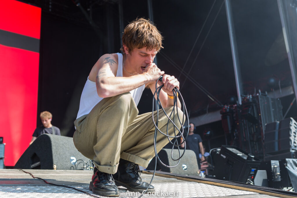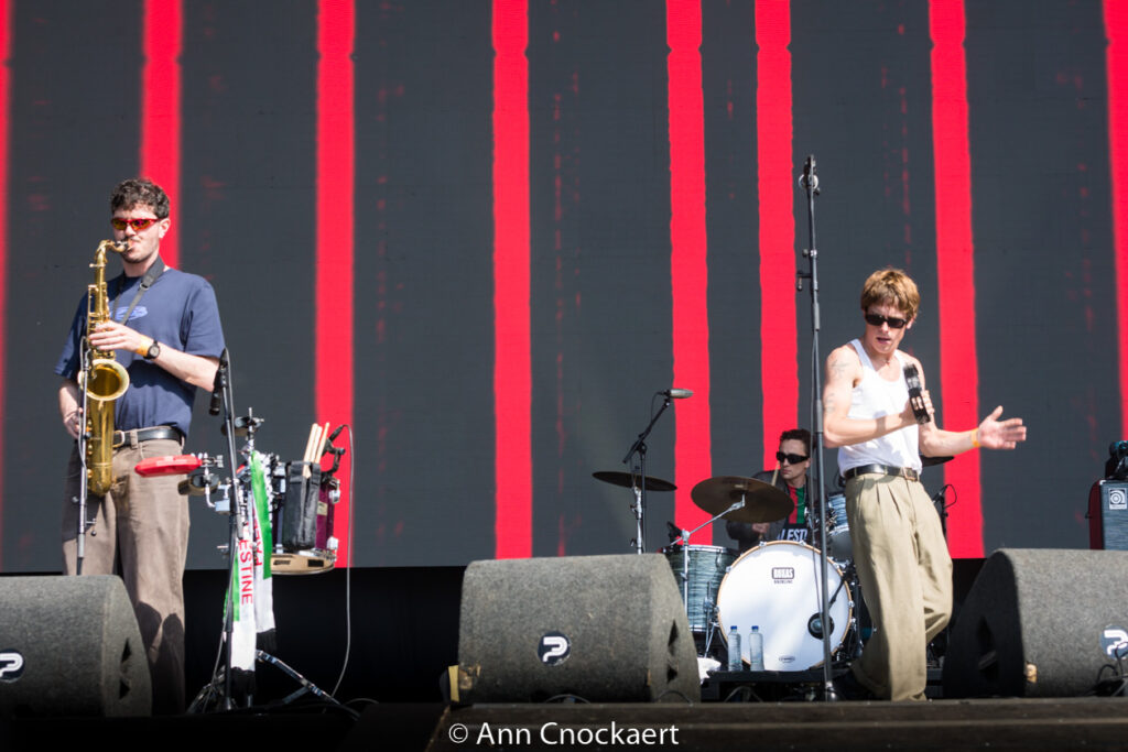 Postpunkgitaren met een saxofoon. Of dat goed afloopt? Natuurlijk Roxy Music deed het in de jaren 70 en maakte legendarische albums met dit concept. De scepter van deze formule is tegenwoordig in de handen van de Britten van DEADLETTER. Het was geen sinecure voor het zestal om een festivalweide om half vijf te doen ontploffen, maar dat weerhield de band niet om te overtuigen met hun songs. Donker, maar dansbaar en vooral urgent, want DEADLETTER is niet blij met hoe de wereld vandaag draait. Wie wel natuurlijk… Maar in hun geval mondt hun ontevredenheid uit in het pareltje dat hun debuutalbum Hysterical Strength is. Overduidelijk zieltjes gewonnen op Vestrock en voldoende opgewarmd om ons naar de tent te reppen voor één van de best draaiende rockmachines van ons land.