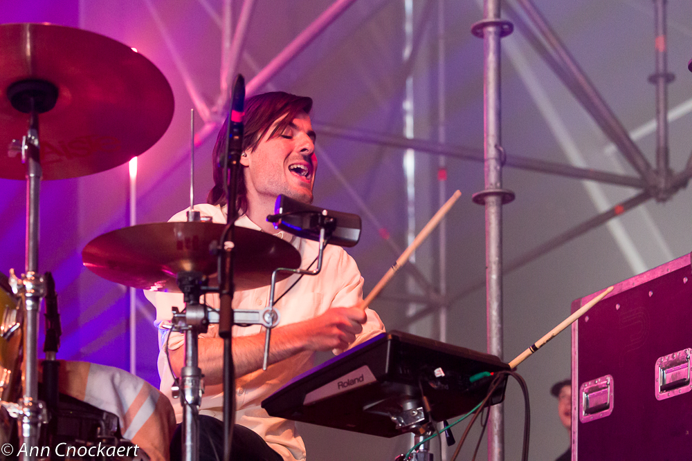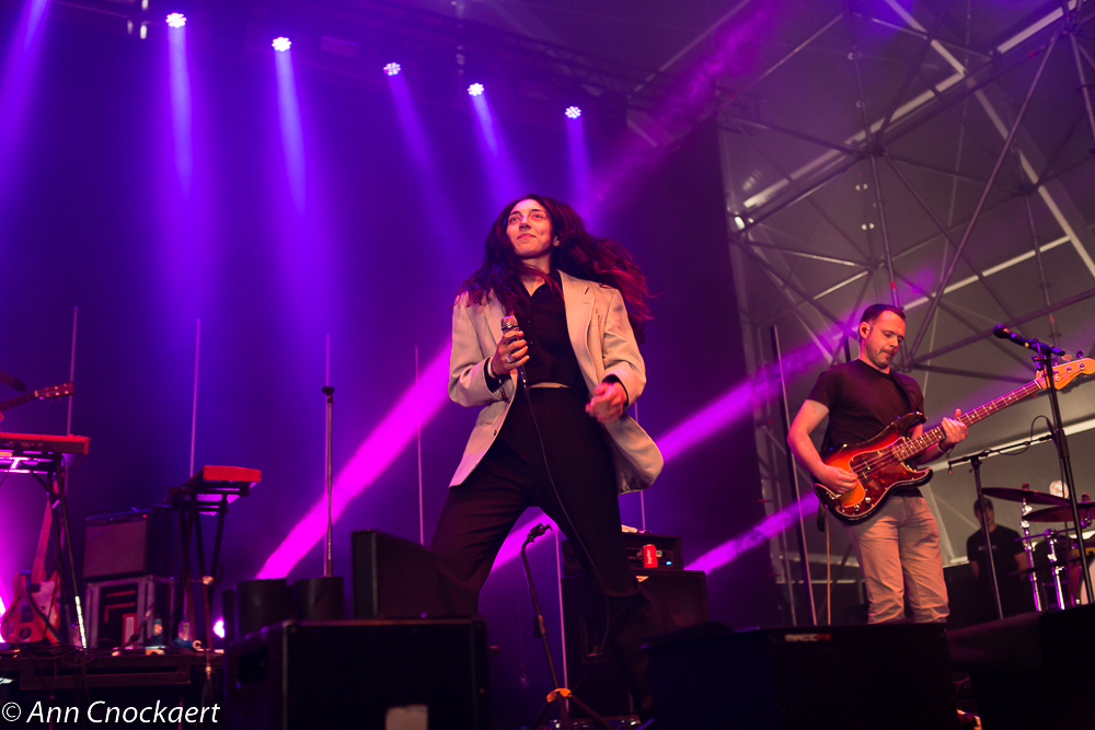 Intergalatic Lovers waren al vroeg aan de beurt. De trots van Aalst, de trots van Oost-Vlaanderen en er waren er nogal wat in het publiek die van daar kwamen. Supporters, zeg maar. Fans van Lara Chedraoui, frontvrouw par excellence. Ze bezit de goedgekozen gave (kan je gaves kiezen?) om het publiek op te zwepen middels zang en dans en ze speelden hun hits die nu nog hitjes zijn, maar ze groeien, groter en groter. Dit is een band van bij ons die we, net als onze wielrenners en voetballers, horen te koesteren. Oei, het chauvinisme-alarm gaat hier af. Voor één keer negeren we dat, want vroege singles als Delay en Instant zijn nu al klassiekers waarvan ze er nog veel gaan maken.