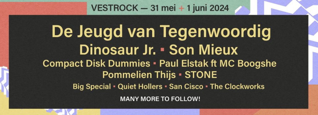 De Jeugd Van Tegenwoordig (NL), Dinosaur Jr. (VSA), Son Mieux (NL), Compact Disk Dummies (BE), Paul Elstak Ft. Mc Boogshe (NL), Pommelien Thijs (BE), STONE (VK), Big Special (VK), San Cisco (AUS), Quiet Hollers (VSA), en The Clockworks (BE) zijn de eerste elf namen die de organisatie van boutique festival VESTROCK zojuist heeft bekendgemaakt.
