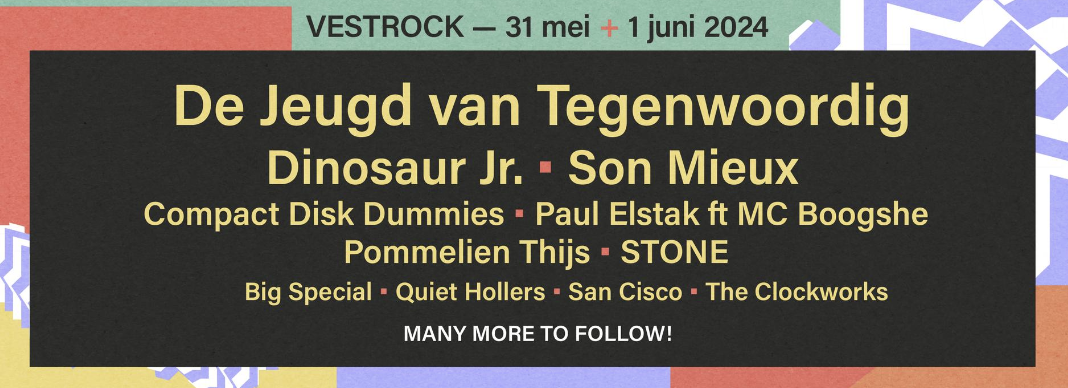 De Jeugd Van Tegenwoordig (NL), Dinosaur Jr. (VSA), Son Mieux (NL), Compact Disk Dummies (BE), Paul Elstak Ft. Mc Boogshe (NL), Pommelien Thijs (BE), STONE (VK), Big Special (VK), San Cisco (AUS), Quiet Hollers (VSA), en The Clockworks (BE) zijn de eerste elf namen die de organisatie van boutique festival VESTROCK zojuist heeft bekendgemaakt.