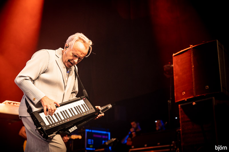 Nik Kershaw kon ons jammer genoeg niet meer overtuigen om te blijven voor zijn performance, terwijl generatiegenoot Howard Jones ons dan wel weer naar binnen lokte van bij de eerste lijnen die hij zong. Hij vertelde dat zijn allereerste concert in Europa ooit in België was, als voorprogramma van Peter Gabriël en voegde er (gedesoriënteerd?!) aan toe dat het geweldig is om terug in Brussel te zijn. Met Robin Bolt op gitaar en een piepjonge knaap (het bleek zijn allereerste optreden te zijn!) aan de toetsen, bracht hij stemvast en met een elegante podiumprésence onder meer zijn hits Things Can Only Get Better en What Is Love. Wat we hoorden, kon ons tegen de verwachtingen in wél bekoren.