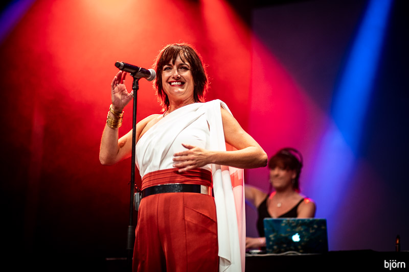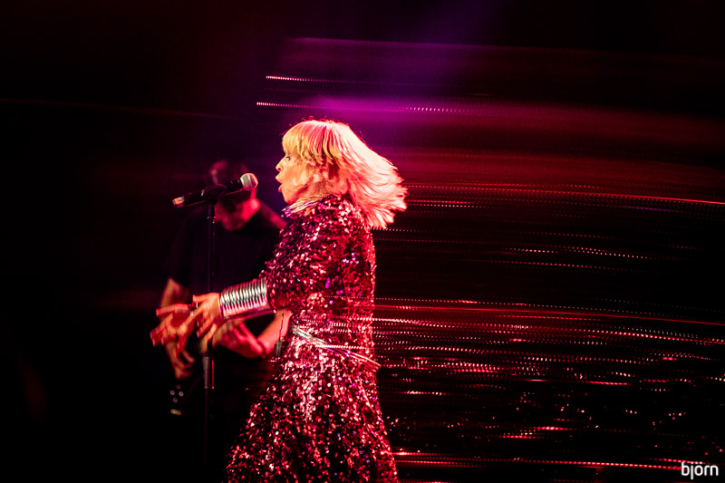 En dan was het diva-tijd met Toyah, die het podium rood en glinsterend, maar nog steeds stijlvol, innam en haar band bijna naar de achtergrond deed verdwijnen. Sensational was één van de nummers die we te horen kregen. Het is er eentje van haar succesvolle album In The Court Of The Crimson Queen (2008/2010), dat dit jaar ‘heruitgevonden’ en opnieuw gepromoot werd. Ook van Echo Beach van Martha And The Muffins passeerde er een coverversie door Toyah. Covers hoeven niet voor ons, maar het zorgde wel meteen voor het juiste sfeertje bij de luisteraars. Een verrassend energiek optreden met een pittige dame die nog behoorlijk wat punkattitude uitstraalde vanavond.