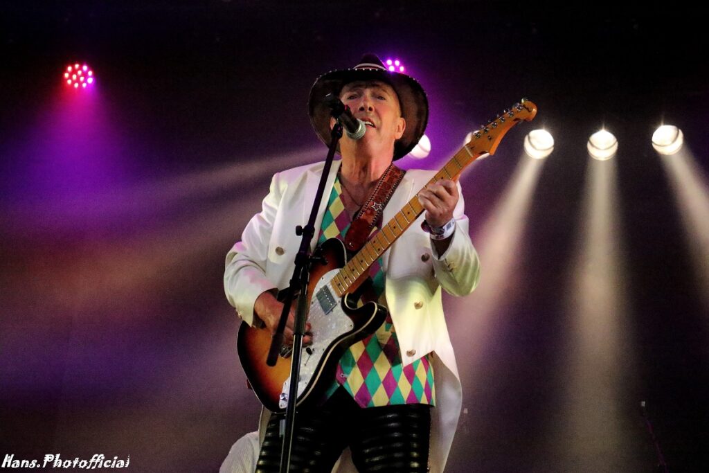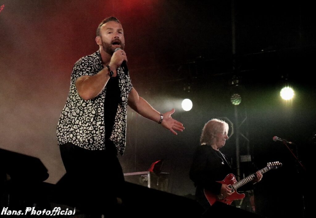 De grote tent werd al vroeg in de namiddag een eerste keer afgesloten wegens volzet. Reden daarvoor? Nick Kershaw! Regen en hagel hield de fans die niet meer in de tent konden, niet tegen om toch te blijven staan om een idool aan het werk te zien. Toch heel wat niet-kenners, die een blik van herkenning kregen, wanneer Kershaw opende met Come on down, Wide Boy en Dancing Girls. Oudere nummers, die iedereen kent. Zijn muzikanten brachten het er schitterend vanaf en ook hitwonder Kershaw zelf bleek slechts af en toe heel even ‘steminstabiel’ te zijn. Hij verstopte ook twee covers in de set, wat het publiek wel kon smaken: Only You (Yazoo) en The One And Only (Chesney Hawkes). Er hing liefde in de lucht. Het draaide rond en rond…. en The Riddle werd met zijn gezapige sterke riedeltje meegewiegd, en geneuried. Het hoeft niet veel woorden wellicht, om uit te leggen hoe het publiek uit zijn dak ging op de echt grote hits als Wouldn’t it be good en I Won’t Let The Sun Go Down On Me.