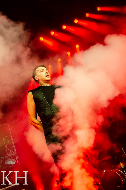 Bij het optreden van Blutengel zagen we ook heel wat Duitse fans richting podium trekken. De aantrekkingskracht is groot: een overgepromote Duitse band, geluid dat ruw, maar erg afgewerkt klinkt, visuals waarin de vrouw als aantrekkelijk lustobject tentoongesteld wordt, verleidelijke dansacts… het werkt blijkbaar. Maar niet voor ons. Hun album Seelenschmerz kon ons destijds nog bekoren, maar ondertussen hebben we het wel gehad met deze futurepopsound, die bij elk nummer gewoon weinig gedifferentieerd weerkeerde. We kregen een mooi opgevoerde show te zien, die weinig passie of emotie overbracht. Eentje dat er toch uit sprong? Teufelswerk, één van hun recente nummers van op het laatste Blutengelalbum Un:Gott. Voor de tweede keer dit weekend kregen we ook een dans met lichtgevende vleugels te zien door Audrey bij het nummer Engelsblut.