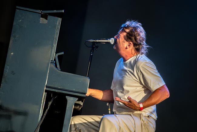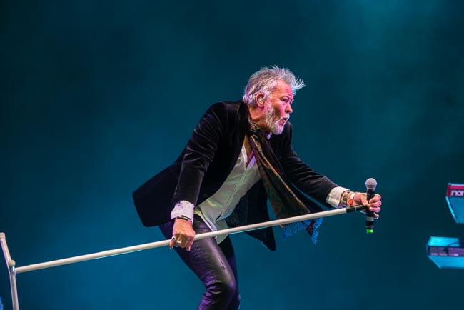Het ene ex-Visage-lid is het andere niet en soms kunnen ze samen ook niet meer door dezelfde deur. Maar terwijl Rusty Egan nog volop repeteert voor zijn optreden op zaterdag, is het Midge Ure die vandaag het podium inneemt. De man heeft natuurlijk meer in zijn ervaringsrugzak zitten dan enkel Visage, als we denken aan de bands waar hij deel van uitmaakte of tijdelijk in meedraaide als vervanger: zijn eerste eigen band Stumble, Salvation, Slik, PVC-2, The Rich Kids, Misfits, Ultravox, Japan, tot het samen met Bob Geldhof opgerichte Band Aid en de bijhorende Live Aid-events. Nadien ging hij alleen verder, maar zijn soloreleases konden de eerdere successen niet evenaren. Al die ervaring hoor en zie je ook op het podium, dat hij nog steeds met gemak en ‘natural flair’ inpalmt. Hij start het optreden evenwel met technische problemen: de microfoon werkt niet. “I knew the Brexit was no good idea, but I had no idea you would take my electricity”, repliceert hij hier speels op. Hij zet samen met zijn sterke band een knappe set neer, waarbij de drums dof-vol klinken en de toetsenist voor een bijzonder energieke dynamiek zorgt. De Visage-hit Fade To Grey is zo door en door gekend, dat dit op het klein strand een collectieve donkere dancetrance teweegbrengt. Het theatrale Vienna is een Ultravox-hoogtepunt. Midge Ure laat de track sterk galmen, met de golven op de achtergrond. Ook wanneer hij de microfoon inruilt voor de toetsen en instrumentaal van zich laat horen, is het duidelijk dat hij een getalenteerd muzikant is, wat hij met afsluiter Dancing With Tears In My Eyes (Ultravox) beklemtoont.