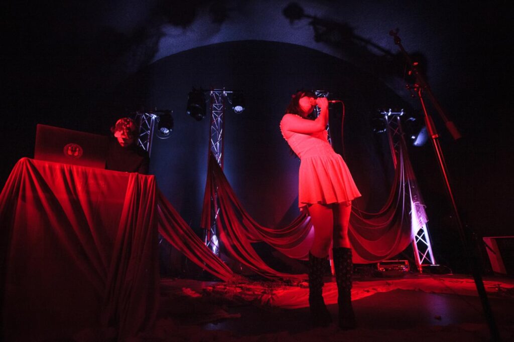 Er zijn veel bands uit de alternatieve experimentele popscene waarmee we goed zouden kunnen lachen en een universum delen. Eartheater, Boy Harsher…