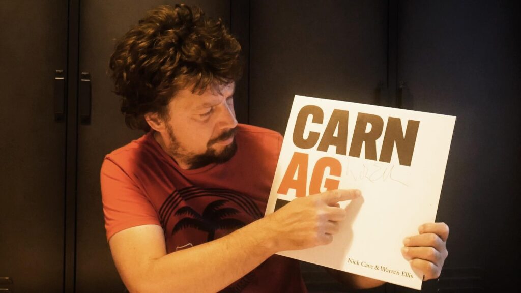 Vorig jaar, bijna dertig jaar later, werd hij aan de vooravond van Best Kept Secret gespot in de frituur bij mij om de hoek. Ik was vrij snel op de hoogte dus ik sprong gezwind op de fiets, hij heeft nog een biertje van me tegoed. Helaas, de vogel was al gevlogen. Zijn rechterhand Warren Ellis heb ik wel te pakken gekregen. Hem heb ik hun vinyl Carnage die ik toen net die week had gekocht laten signeren.
