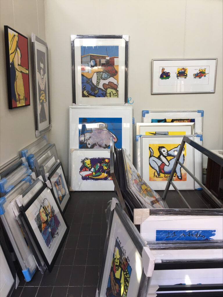 Daar zijn we wel mee bezig. Maar dat is niet zo makkelijk. Verder zijn we afhankelijk van sponsoren en vrienden van het museum en zo. Het is dus sprokkelen geblazen! Maar het gaat toch wel goed. We krijgen een 300 á 400 mensen per dag. Niet allemaal gaan ze ook het museum in. Maar eigenlijk is het goedkoop met 7,50 euro entree. Twee á drie keer per jaar hebben we een rock-‘n-roll gerelateerde expositie: Mink Deville, The Beatles, The Stones, Queen, Gerard Wessel (Nederlandse fotograaf, publiceerde oa. een fotoboek over Herman Brood, nvdr) uit Scheveningen… Nu heb ik de Wild Romance boven hangen in een aparte zaal om ook wat mensen te trekken. Ik ben nu bezig met Tom of Finland (pseudoniem van Touko Valio Laaksonen, Finland, nvdr). Dat is een kunstenaar die in de homoscene heel bekend is. Die expositie loopt vanaf 1 oktober. Ik moet wel nog even naar Finland daarvoor. Er zijn boven ook heel wat dingen te zien van de zussen van Herman. Hij had twee zussen. De oudere zus was Elly. Toen kwam Herman. En daarna kwam er nog een tweeling Beppie en Riske. Riske is een man. Die woonde in Assen en Beppie woont in Amstelveen. Die komen hier nog regelmatig. Die stellen ook dingen uit het verleden beschikbaar: foto’s, poëzie’s, dat soort dingen. Maar er zijn ook hedendaagse dingen van wat Brood gemaakt heeft. Die kwam dus elke maand bij me. Dan sliep hij een dag of vier, vijf bij me. Schilderijen maken in het atelier, zeefdrukken signeren. En dan lever ik de certificaten af die er toe doen, die rechtsgeldig zijn. Dat is heel erg belangrijk. Er zijn veel vervalsingen. Niets is wat het lijkt. En als het goedkoop is op een of andere site, dan garandeer ik je: blijf daar af. Als het te mooi is om waar te zijn, dan is het ook zo. Je kan het beter hier kopen met certificaat. We zijn het enige Herman Broodmuseum in Nederland.