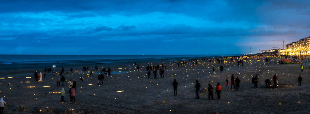 De dood gaat denk ik altijd een thema blijven in onze muziek. Mensen die iemand moeten afgeven, verliezen te vaak daarbovenop ook nog eens een groot percentage van hun vrienden. Omdat we geen handvaten hebben om met gevoelige thema’s als afscheid om te gaan. En nochtans liggen de oplossingen zo voor het grijpen. Het is die gedachte die ons drijft. De wereld van de Vlaamse troostorganisaties is ook een adembenemend schone wereld, waar het grote publiek nog zo weinig van afweet. Vorig jaar verlichtten we samen met meer dan 100 vrijwilligers de volledige kustlijn van De Panne met meer dan 10.000 kaarsjes. Onze maat Mattias Devriendt speelde er 3 uren op z’n Rhodes. Het was adembenemend mooi.