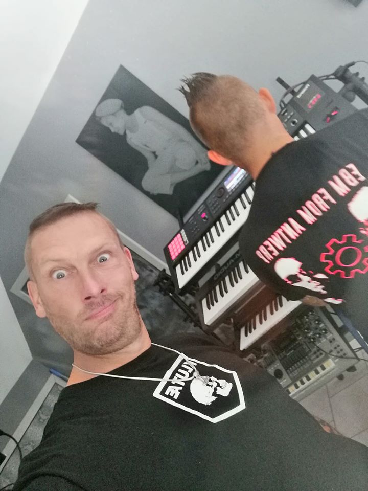 Sebmer: Dat is altijd al een beetje een eeuwige strijd tussen ons geweest. Omdat we samen werken. We zijn één pakketje (wolven). We creëren samen, maar laat ons zeggen dat Cyrb de ‘machine man’ is. Ook al help ik hem met mijn EBM-ideeën. Hij is sterker in dark electro, weet je? Cyrb en ik zijn een echt team, ja. Zonder hem, geen Wülf7. Zonder mij, geen Wülf7.
