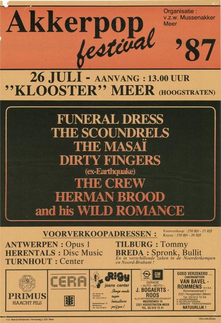 FRONT 242 en DIRTY SCUMS omdat zij de oudste Belgische punkbands zijn die non-stop zijn blijven spelen. Ze zijn een viertal jaar voor ons begonnen en je hebt natuurlijk punkbands die eerder zijn begonnen maar die zijn niet non stop actief gebleven. Ik zou er nog 99 andere opzetten natuurlijk van AGITATORS tot ZYKLOME A!