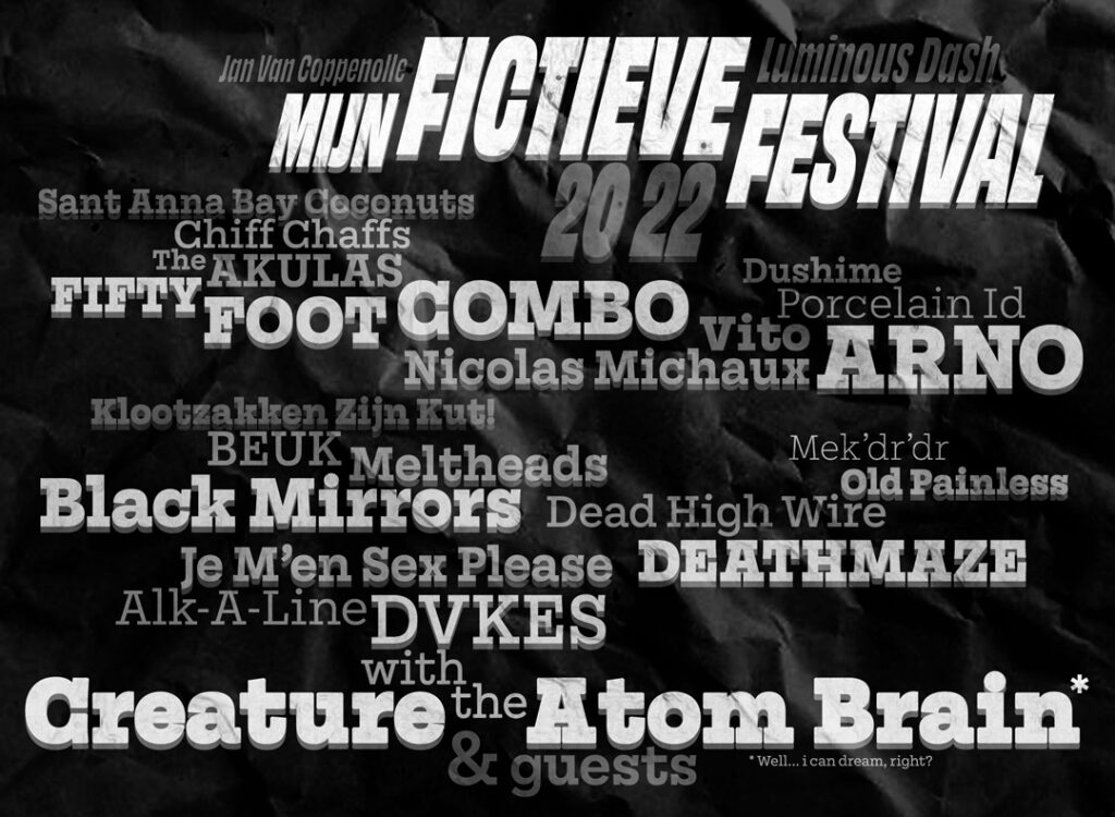 Als ik mag dromen van de affiche van een Fictief Festival in mijnen hof, dan zou die vijfdaagse Belgische binge er als volgt uit zien: