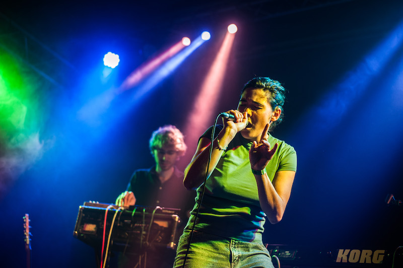 De zaal loopt voller wanneer Aili op het podium verschijnt. Dat is uiteraard de voornaam van zangeres Aili Maruyama, maar vanavond toch vooral het duo dat ze vormt met synthesizerenthousiasteling en gitarist Transistorcake. Samen laten ze er geen gras over groeien en pakken ze het publiek meteen in met hun buitenaardse geknetter.