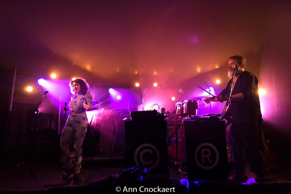 De dynamiek tussen Charlotte en Reinhard is ontroerend. Zij bedient zich van een Yamaha-synth die je in feite alleen maar in foute 80’s-clips ziet, terwijl Reinhard zich een tovenaar waant op vreemde gitaren die hij naar alle waarschijnlijkheid zelf heeft omgebouwd, maar waaruit de meest uiteenlopende klanken komen. Van Django Reinhardt (ha!) tot Peter Hook. Je moet het maar doen, maar Reinhard Vanbergen doet het!