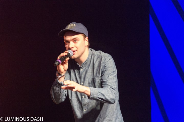 Maar dan, klokslag 21u, was het de beurt aan de nieuwe chouchou van muziekminnend Vlaanderen. Met… een valse noot… Pasgeboren+ knalde uit te boxen, Brihang raasde het podium op en de eerste 10 seconden hoorde we….niets van zijn raps. Toen hij uiteindelijk toch te horen was, ging er een golf van opluchting door de zaal. Want niet alleen Brihang had er schik in, ook het publiek, van 9 tot 99 jaar, had er duidelijk zin in.