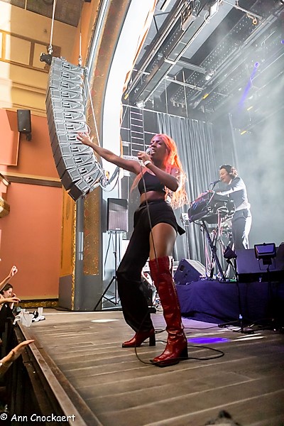 “Sprakeloos. Dit is absurd reëel. Toen ik veertien was stond ik in de Vooruit en toen ik dat podium zag wou ik er altijd op staan. Neen, ik ga niet huilen, ik doe dat straks wel.” Het was duidelijk gisteren, na jaren hard knokken is Charlotte Adigéry een ster geworden. Tijdens een thuismatch scoor je altijd wel iets gemakkelijker doelpunten, maar de goede berichten blijven maar binnenlopen voor de Gentse. Na een tour in Australië met diva Neneh Cherry, gaat Charlotte binnenkort richting Amerika om er met Metronomy te mogen spelen. Maar vandaag nog eens in de schaduw van Jacob Van Artevelde en dan nog wel met een show waar de balzaal van de Vooruit te klein voor was en verplaatst werd naar de magische grote zaal waar vliegensvlug het bordje sold out aan ging te bengelen. A star is born, en dat zou ze ook met de nodige flair en nederigheid bewijzen.