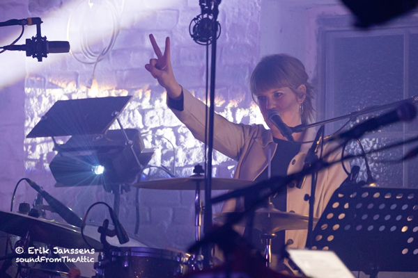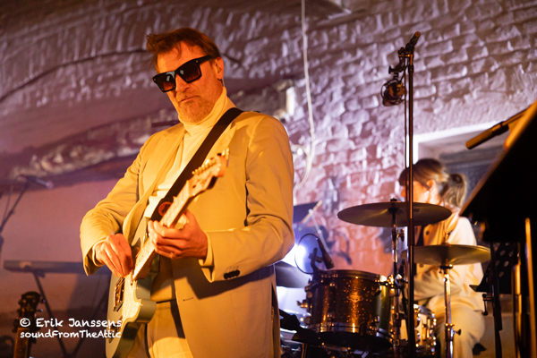 Afsluiten doet men met Morning sun, The Player, Swedish DD en Housewife. Compleet voldaan beweegt een massa bezoekers nog langs de merchandise stand, oa de nieuwe lp ligt er te wachten op een langdurige relatie met een draaitafel. Buiten spotten we toetsenist Jeroen Swinnen, die regelmatig de Moog onder de vingers had. Hij vatte de avond mooi samen: “We hebben ons geamuseerd”.