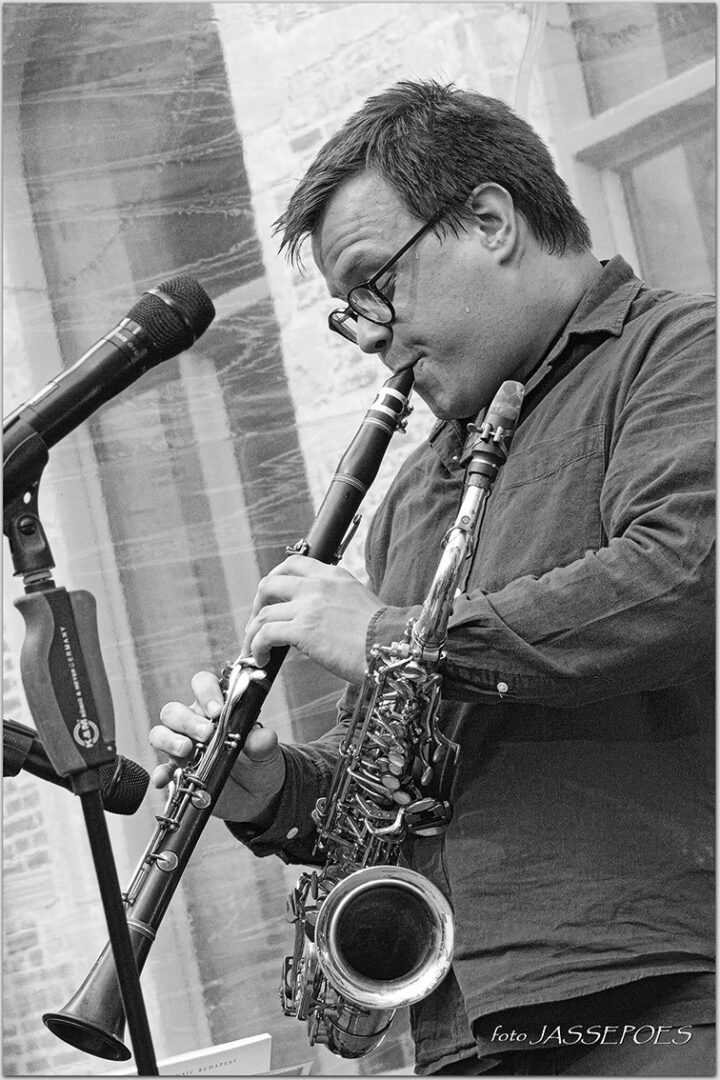 Dat Dieter Vaganeé die vrijdag weerom schitterde op de sax mag geen verrassing heten, hij blies ook op de klarinet, nieuw voor velen onder ons. Voor het eerst in Long, een subtiele blues. Dieter wisselde op het juiste moment in de compositie, ook vlotjes terug naar de sax. Fraai pianomomentje van Eysackers ook.