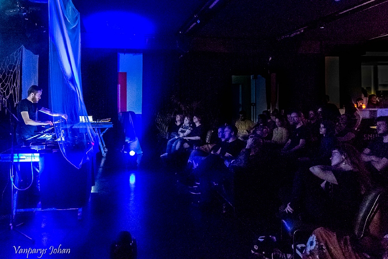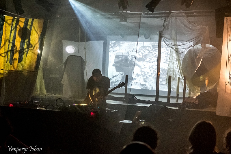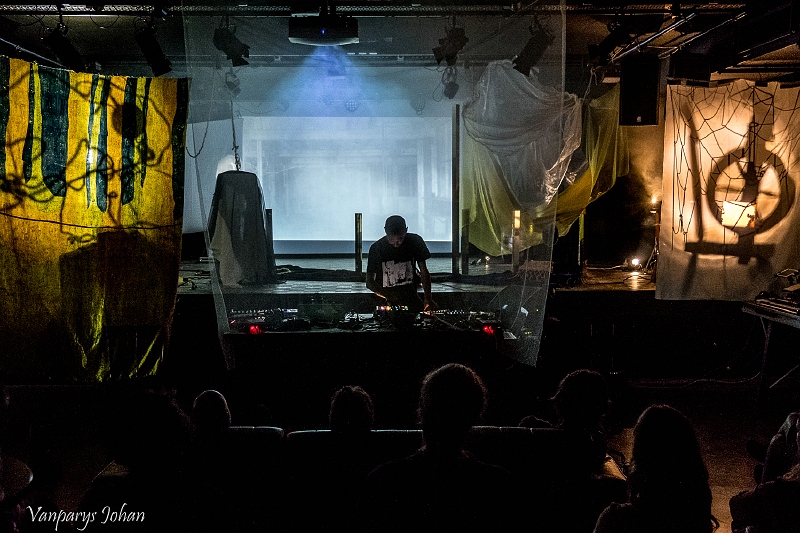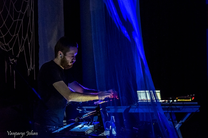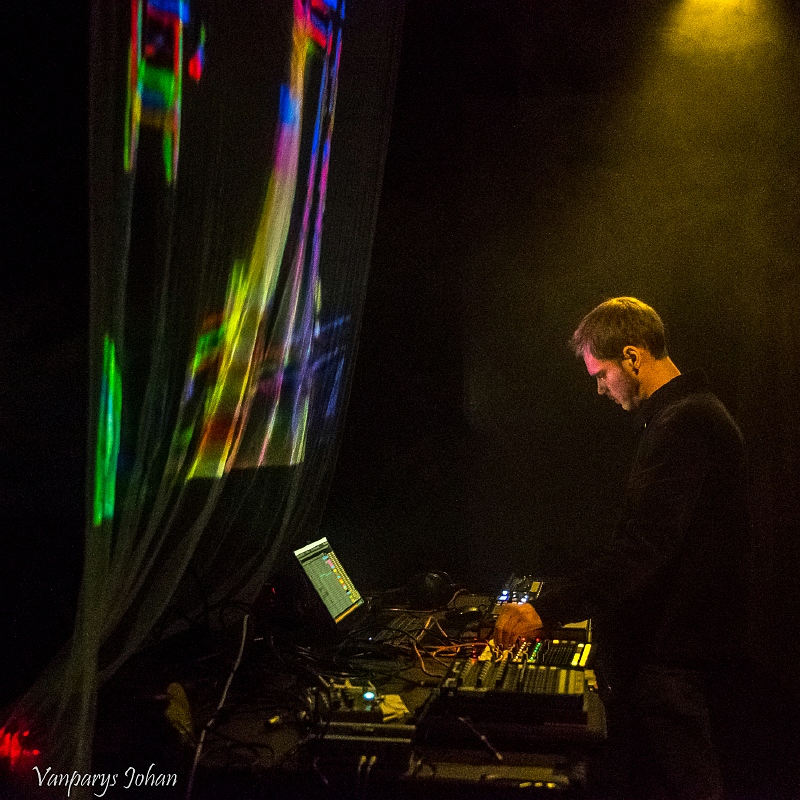 Op de Dark Electronic Night speelde hij nieuw werk. Zijn soundscape versmolt ambient en drone en nog een rist muzikale invloeden ertussenin. Op een belendende muur en een doorzichtig doek, dat voor hem hing, werden visuals geprojecteerd en een bizarre gedaante kwam ook nog het podium op om richting te geven aan lichtbundels die een claustrofobisch effect sorteerden. Zijn set eindigde met het klotsen van zeewater. Zowel auditief als visueel was Aponogeton een elektronisch snoepje dat wij wel lustten.