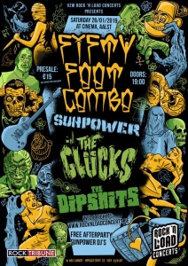 Met Fifty Foot Combo loopt het podium vol met 5 unieke persoonlijkheden. Eén voor één straffe muzikanten met uitstraling, die versmelten tot de muzikale explosie die Fifty Foot Combo is. Vanaf de eerste tot de laatste noot, werd het publiek meegezogen in een rock’n roll psychobilly-sfeer die ze gewoon leken uit te ademen, alsof het hen geen enkele moeite kost. Een krachtige Bart Rosseau achter de drums, waarbij JesseR de boel nog wat oppepert met bongo’s en andere percussie. Steven Gillis en Rodrigo Fuentealba die zot gitaarwerk op het podium neerzetten en top basist Jens De Waele die ongenadig snel zijn vingers over die snaren laat glijden, tokkelen, rammen… Voeg daar de female touch – maar volgens ons niet te onderschatten – van Sandra Hagenaar aan toe, die de Hammond-toetsen en de theremin met stijl én attitude bewerkt en wij kregen die perfecte combo te horen. Het publiek ging vanzelf op in een zeer basale dansmodus en dat betekent veel. Fifty Foot Combo deed vergeten, liet genieten, maakte het wild !