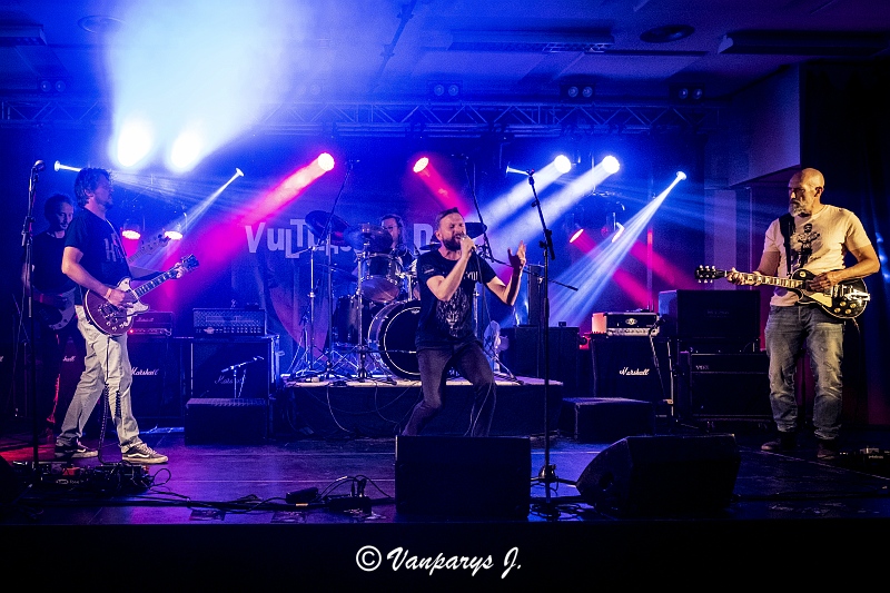 Vultures at Dusk is een vijfkoppige band uit Brugge die een mix van postgrunge en hardrock brachten. Na het geweld van Severdhed was het even wennen aan de tragere met psychedelica gespekte nummers. Vultures at Dusk speelde deze avond voor het eerst met hun nieuwe bassist. Zanger Jeroen Klein Gunnewiek vond echter zijn draai niet zo goed maar slaagde er toch in heel wat emotie in de set te duwen. Hij gebruikte onder andere een megafoon om zijn vocalen te vervormen tot synthetische leuzen tussen de langzame brij van gitaren. Nadien hoorden we dat Gunnewiek ziek op het podium stond om het feestje met de gastheren niet te missen. De emotioneel geladen muziek drong niet meteen echt door maar zorgde wel voor afwisseling tijdens deze zwoele zomeravond. Vultures at Dusk gaat in de nabije toekomst hun debuutplaat uitbrengen die door de coronaperikelen uitgesteld werd.