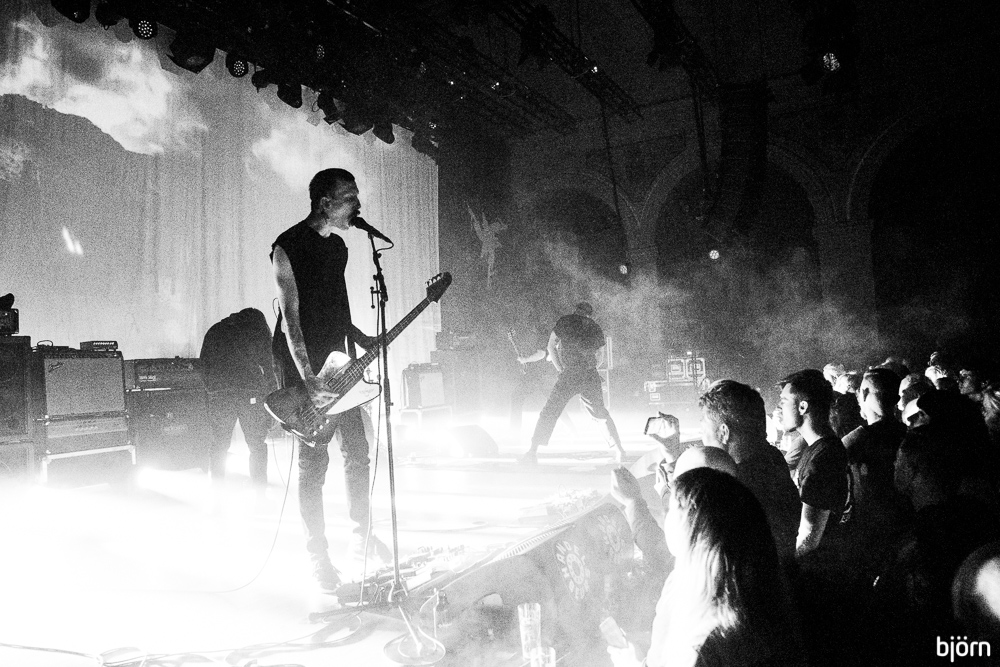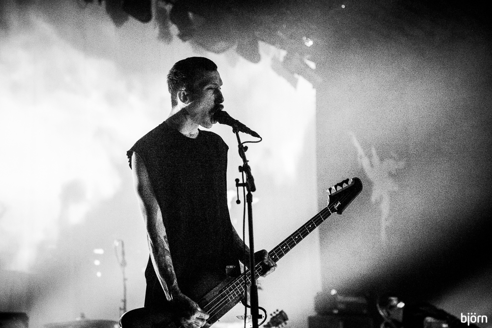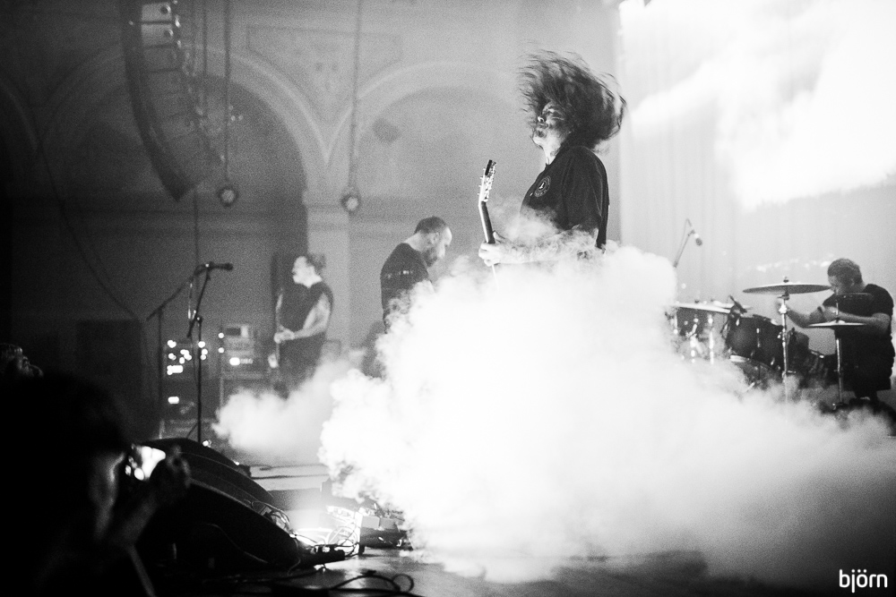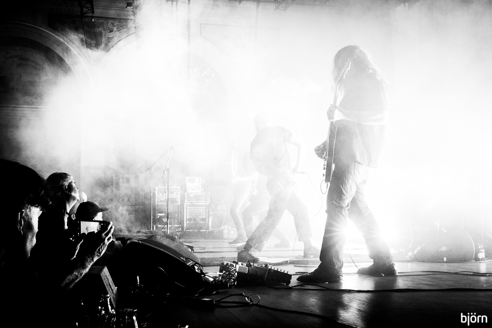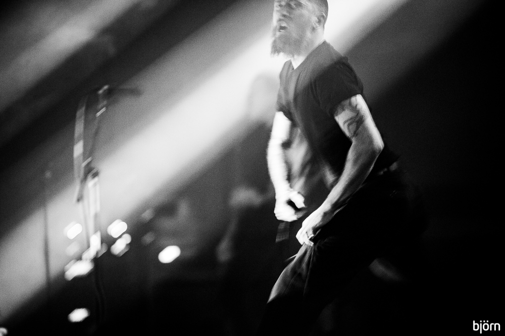 Het was ondertussen ruim 21u30′ toen Colin H. van Eeckhout, Mathieu Vandekerckhove, Bjorn Lebon, Lennart Bossu en Tim De Gieter het podium betraden. Geen applaus, geen interactie met de zaal… dat is wat je verwacht van Amenra en dat is wat je krijgt. Maar wat stonden de heren – ondanks het stevige tourschema – strak!