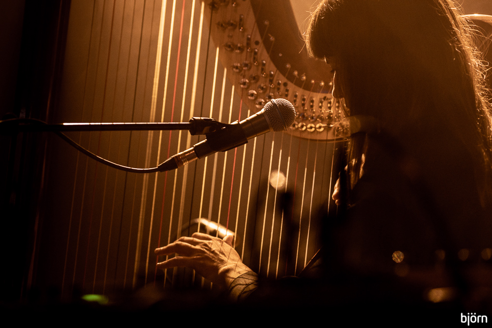 Corecass is het soloproject van de Duitse multi-instrumentalist Elinor Lüdde die zich in Gent echter liet begeleiden door een niet nader genoemde gitarist (laat het ons weten moest jij zijn naam kennen). Samen brachten ze een soort van Gloom & Doom soundscapes op synth, harp en gitaar hier en daar aangevuld met zang.