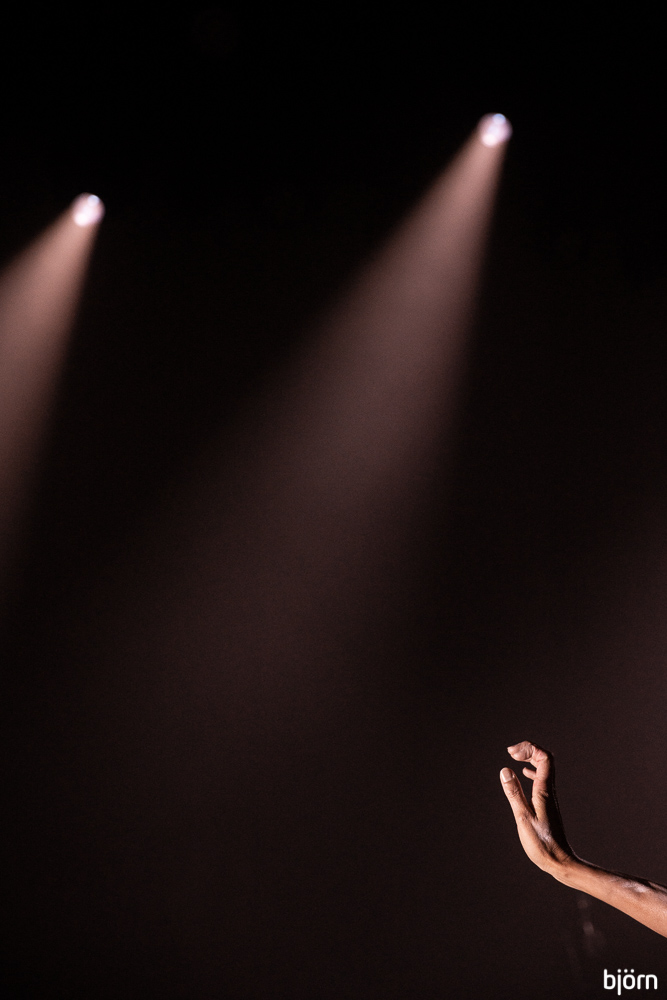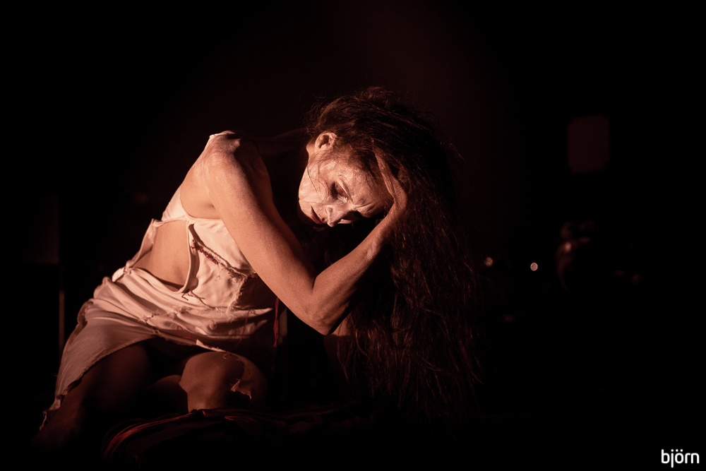 Nele liet zich twee keer van het podium in het publiek vallen om vervolgens knuffelend door de zaal te wandelen. Huidhonger? Afscheid nemen van de wereld der levenden? Uiteindelijk stierf ze een dramatische dood op de sokkel. Los van de schoonheid van de performance, de muziek en de fragiliteit in de bewegingen van Nele duurde de voorstelling misschien net iets te lang. Maar dat kan ook te maken hebben met die context waar we het eerder over hadden.