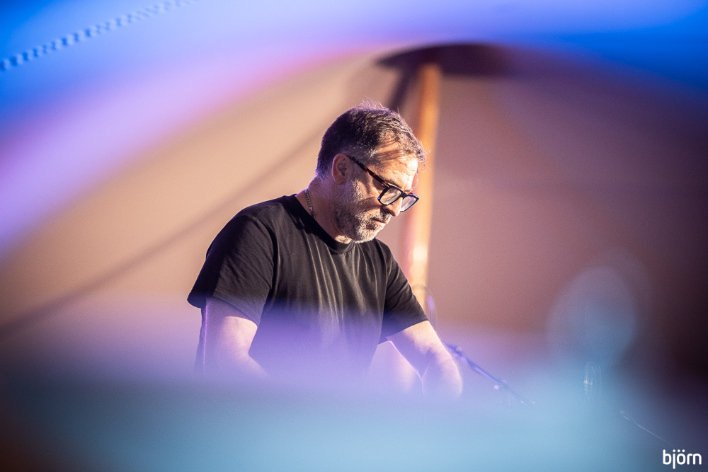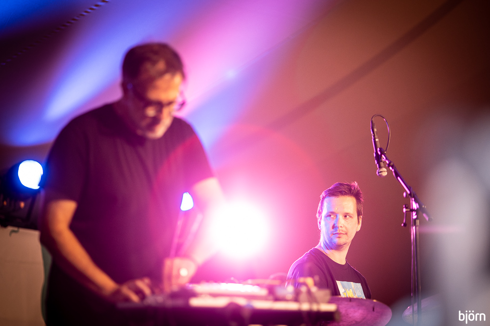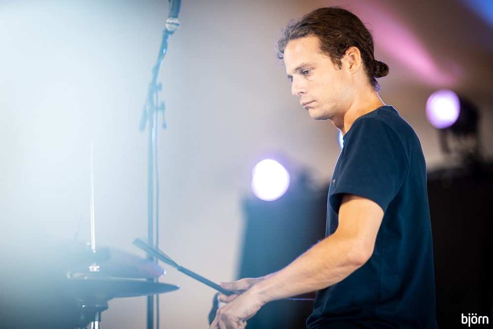 De basis van de nummers vormde echter het meesterlijk tegendraadse drumwerk van Matthias De Waele en de bij momenten kurkdroge bas van Dries Geusens. Een indrukwekkende ritmische tandem die de nummers voortstuwde als Tom Boonen op speed en voorzag van zoveel haken dat de onervaren meestamper er gegarandeerd zijn broek aan scheurde.