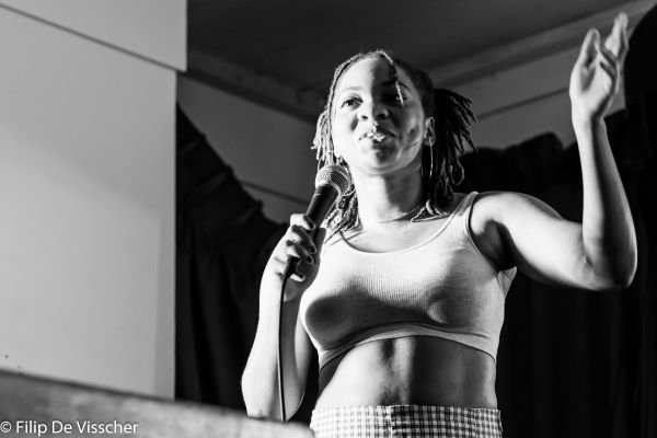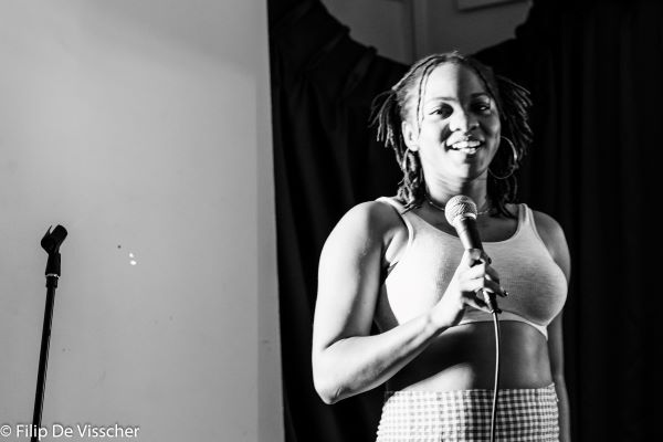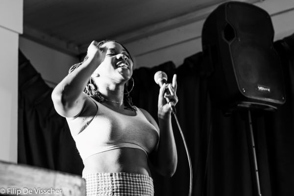 De Gentse met Nigeriaanse roots startte een beetje aarzelend door wat gebrek aan podiumvastheid. Maar eens de eerste schroom overwonnen, kregen we een impulsieve April te zien die volop de interactie met het publiek zocht, wat iedereen heel hard kon appreciëren.