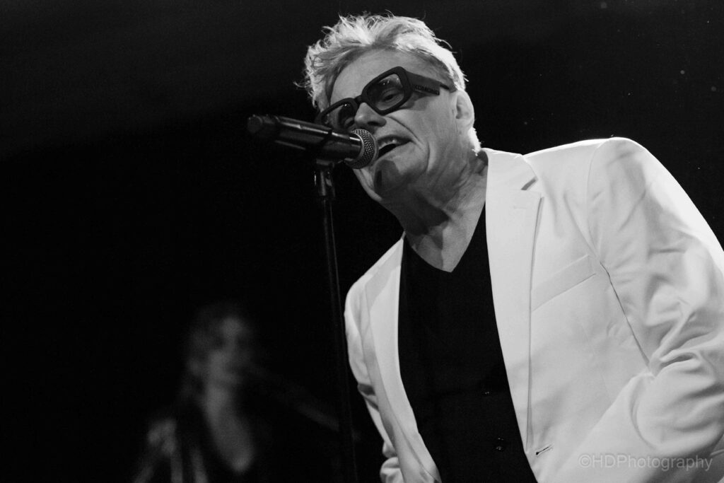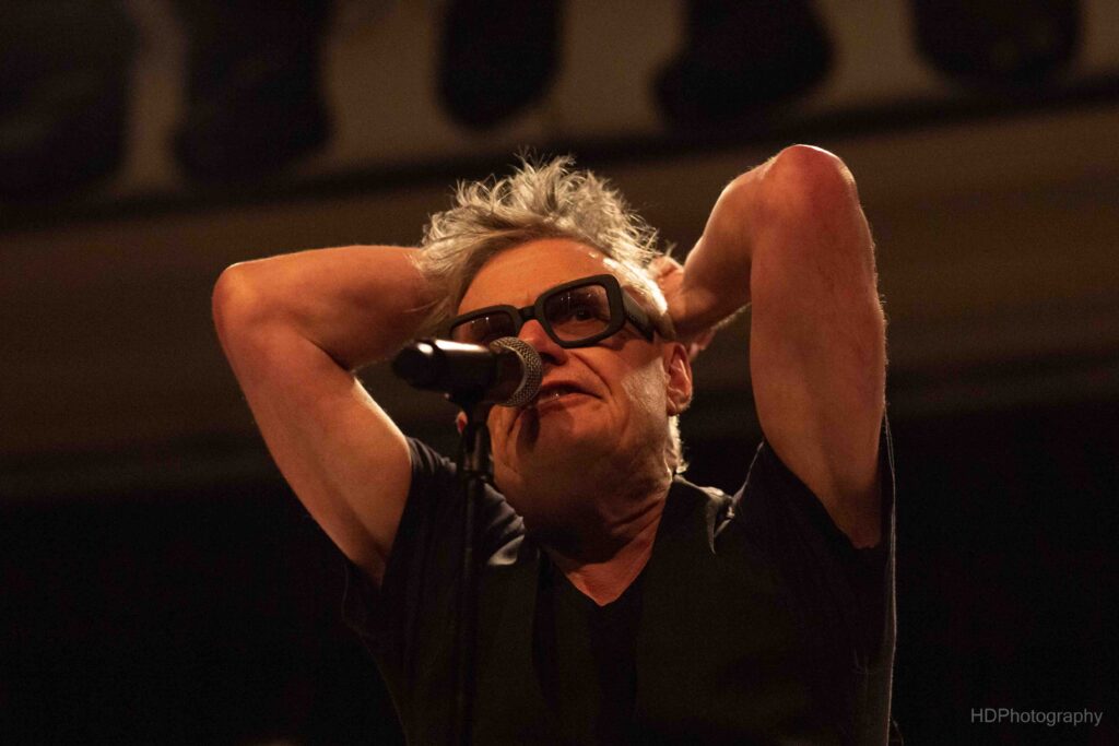 Wie stond er wel? Drie topmuzikanten: er was de gitarist Thomas Vanelslander (Gorki, Helsinki, RVHG) vergezeld door – op de saxofoon, aan de knoppen “en zoveel meer”, improviserend, imponerend – Andrew Claes (Stuff) en aan de toetsen en verantwoordelijk voor heerlijk typerende backing vocals “en zoveel meer”: Leen Diependaele (Samowar, History of New Wave Tour).