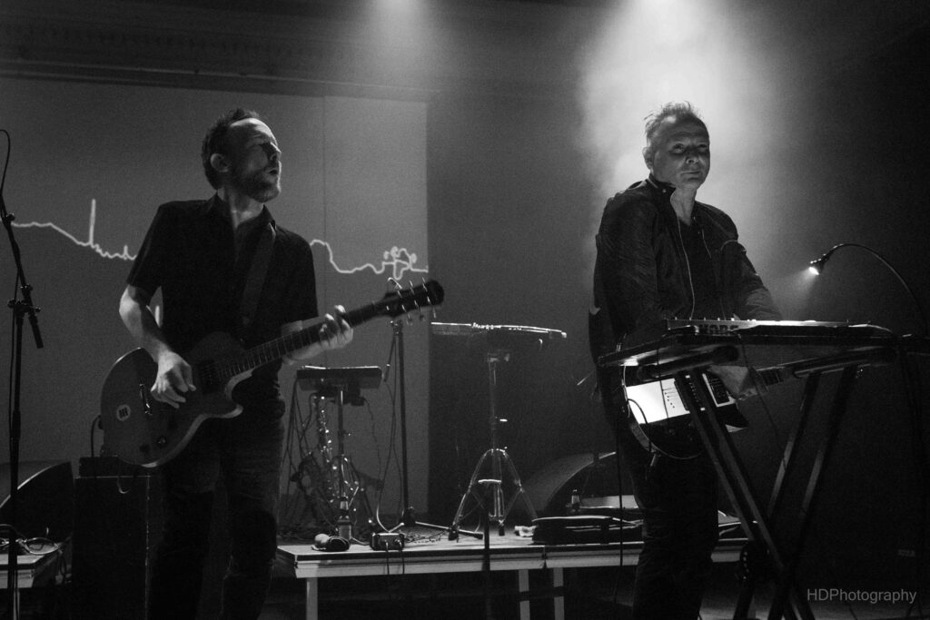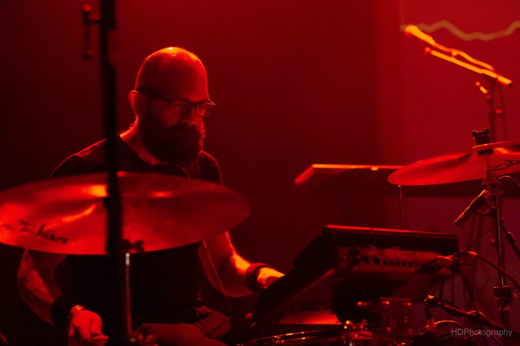 We zien Ivens niet zo vaak met een gitaar en toch leek het instrument een aangegroeid verlengde van zijn lichaam vanavond. Door elektronica voortgestuwd, snijden de snaren de ene keer koud op je huid of zorgen ze voor een ronkende ritmesectie op zich. Hun hart voor EBM wordt niet altijd weggestopt, want onder de kruidlagen loopt de gestuurde, overstuurde psychedelische hectiek soms hoog op in intense ritmes. Elektrogeniale elementen versmelten in het rockgegeven van snaar- en drumwerk.
