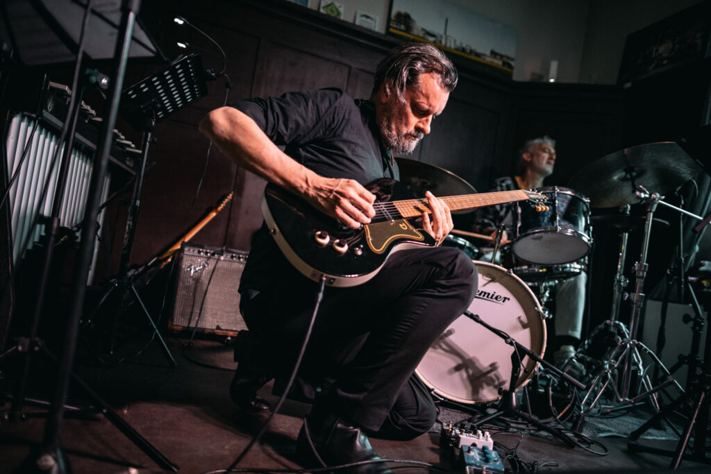 Eens Barcella zijn ritmische ei kwijt was en de rest van de band aansloot, ontspon zich een stevig spelletje muzikale pingpong tussen Segers en De Maeseneer waarna ook Wauters zich in de debatten kwam mengen. Climax nummer twee was in full swing en we zaten er allemaal bij en keken ernaar. Ongelooflijk wat die vier toppers daar allemaal lieten horen en zien en dat in een klein cafeetje in de Muide.