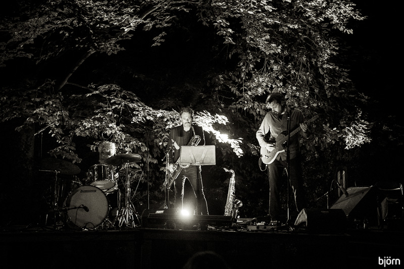 Op zaterdag 12 september gingen we kijken naar dagafsluiter Backback, het jazz trio met Giovanni Barcella aan de drums, Marc De Maeseneer op bariton- en tenorsax en bandleider Filip Wauters op gitaar. Grotendeels in het halfduister, want ook de wel erg karige belichting is een deel van de charme van Citadelic.