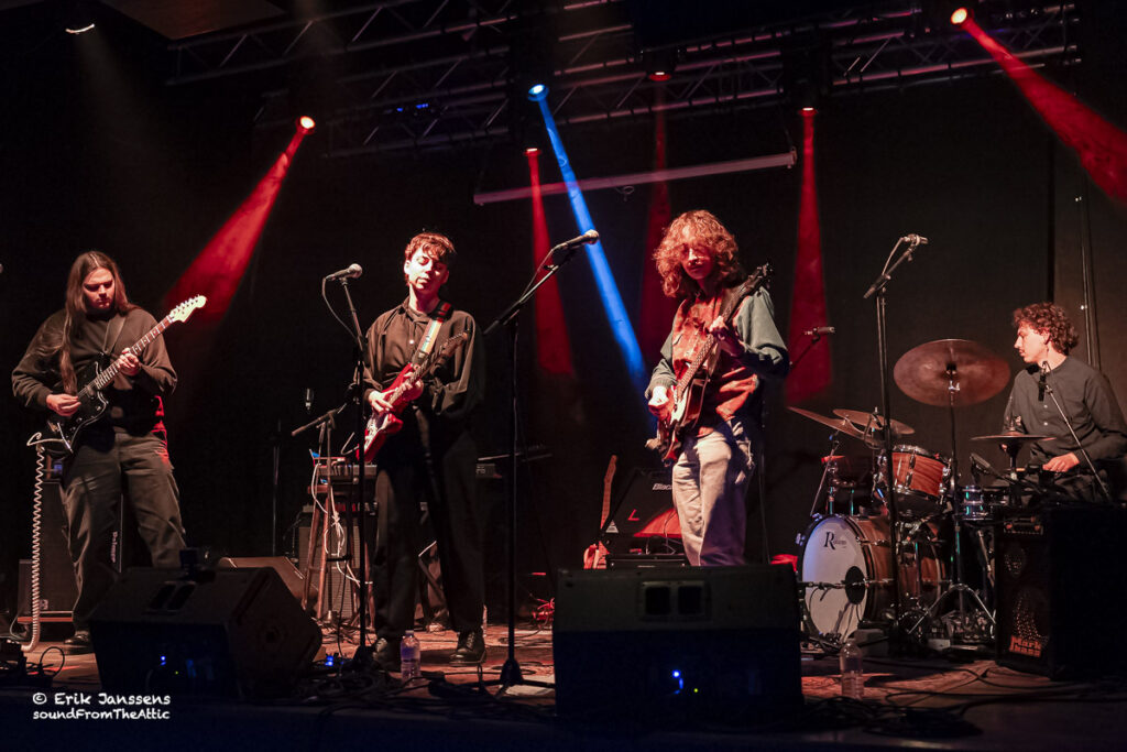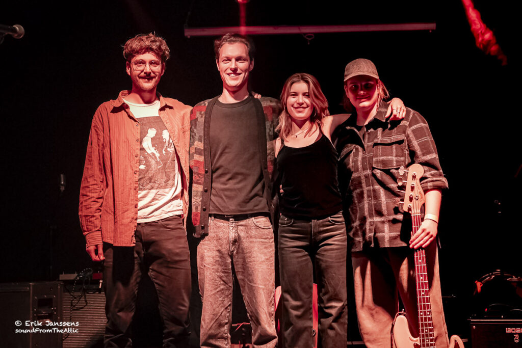 Op vrijdag 14 februari kon het Geelse publiek kennismaken met 3 bands. Als eerste stond Blue Robin op de affiche, een band die ontstond uit de dromen en verhalen van Lore Borremans. Wat begon als een soloproject, kreeg vleugels op PXL Music, waar Lore muzikanten vond die haar visie deelden. Samen met Teun Maessen (drums), Ebe Vranken (gitaar), Axel Ausloos (bas en bas-synth) en Finn Vreven (toetsen) vormt ze een band die kracht en finesse naadloos combineert. Blue Robin zweeft als een mystieke verschijning door de alternatieve popscene. Hun geluid balanceert subtiel tussen de melancholie van Tamino en het magische drama van Florence + The Machine, een hypnotiserende mix die je onderdompelt in een wereld vol emotie en mysterie.