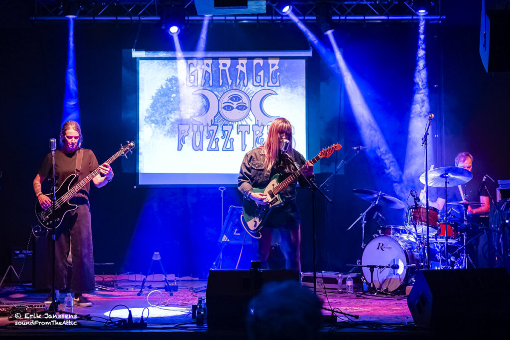 De avond werd afgesloten door GarageFuzzters: Stefanie Geerts (zang, gitaar), Jo Lenaers (zang, bas) en Davy Deckmijn (drums). Dit drietal brengt een explosieve mix van grunge, stoner rock en punk, gedrenkt in een zware fuzz sound. Hun songs balanceren tussen dromerige melodieën en rauwe energie, met opzwepende drums, scheurende gitaren en loodzware baslijnen. De vocals schakelen moeiteloos tussen fragiele klanken en ongetemde, rauwe kreten.