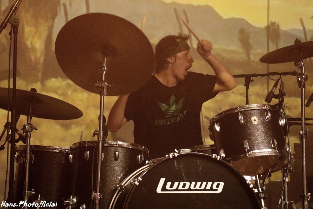Drummer Ryan Gut speelt al 8 jaar met Brant samen, onder meer bij zijn andere band Stöner. Mario Lalli speelt bas en is zowat gekend als de ‘gothfather of stonerrock’. De bijna 57-jarige veteraan richtte oerbands Yawning Man en Fatso Jetson op, een paar jaar voordat Kyuss wereldwijd furore maakte. Want de kruisbestuiving binnen dit genre is behoorlijk ‘jawdropping’. Brant Björk, die we hier verder op Bardot-wijze gaan afkorten tot BB, heeft zelf een drumstock en een gitaarsnaar in ruim 30 albums. Zowat de helft solo en wat de andere helft betreft hebben we een mooie verdeling tussen Fu Manchu en Kyuss.
