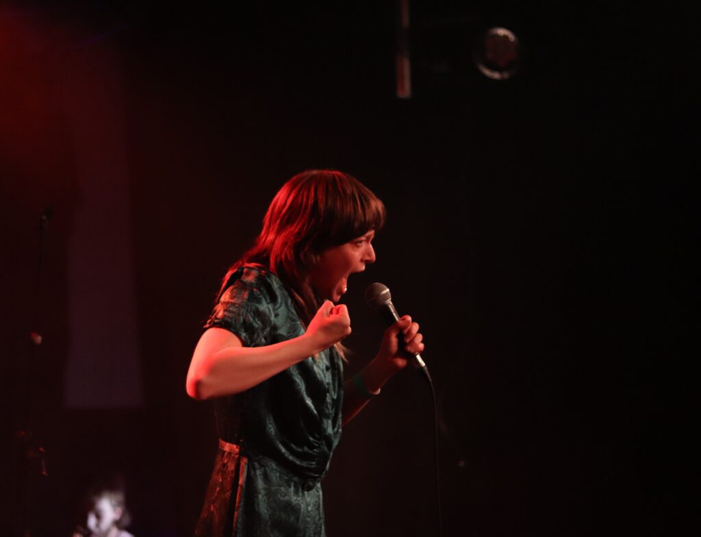 Ze begonnen hun set met de nieuwe single Company car om daarna bijna chronologisch de nummers van hun debuut op ons af te vuren als een intense workout. Ze zouden niet misstaan op camping kitsch met die retro joggings van Adidas. Spijt dat we ons trainingspak van de Zeeman in de kast hadden laten liggen. De Devo-core palmde de zaal in no time in. Ze speelde met zo’n brute kracht dat de fundering van het bos onder spanning kwam te staan.. Even leek er een technisch probleem te zijn, tot er plots een Intergalactische mier door het publiek kroop en de set verder door ramde. Er werd verder nog ritmisch gefitnest en met halters gezwierd tot alles compleet in de vernieling werd gespeeld met een uitgesponnen versie van running, crowdsurfers grepen deze kans met beide handen en benen aan. Als het nog niet genoeg was kwamen ze als dessert terug met een Devo cover, Faling in love, en een wel erg korte en onherkenbare Come together van de Beatles. Al denken we dat het eerder een haha mopje van de band was. Missie geslaagd!