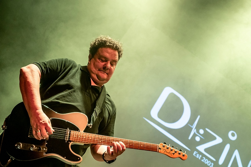 De gitzwarte, donkere klanken zaten dan vooral in het eerste deel, waar D-Zine, in een quasi half nieuwe bezetting verder doet alsof het nieuwe millennium nog niet aangebroken is. Post punk avant-la-lettre dus, maar wel de gepaste opener voor de avond. Openen is nooit leuk, maar D-Zine had er geen problemen mee. Links en rechts werd er wel wat gedanst, al was het matig. Toch mag het gezegd zijn dat het optreden meer dan geslaagd was. Met een set die net afklokte onder het uur bakten ze er iets moois van. Het feestje was begonnen.