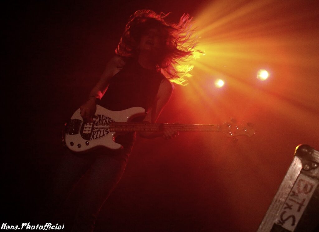 Het is met de bovenstaande woorden dat het vrouwelijke trio, gewapend met bas, drum en gitaar, zich schrap zette voor de 10 songs die hun set omvatte. Dat je nooit op het uiterlijk mag afgaan, werd ons al snel duidelijk. De lieflijke en onschuldige look van de band liet ons bij aanvang kortstondig geloven dat we in het distributiecentrum voor gratis bijbelcursussen waren aanbeland, maar niets bleek minder waar.