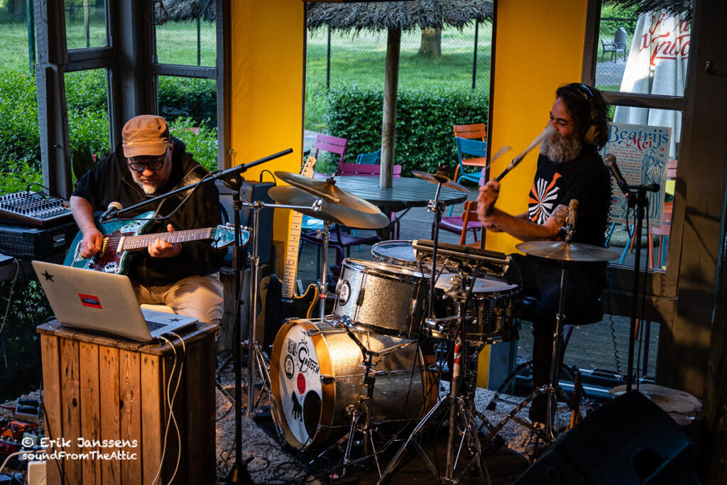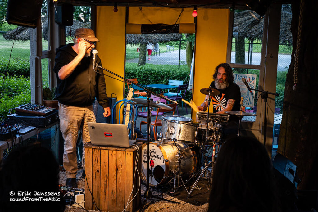 Op een knus en intiem podium zaten de twee artiesten gezellig dicht bij elkaar. Bootsie nam plaats achter zijn drumstel en bediende zijn veelzijdige pad, gevuld met diverse samples. Gerry concentreerde zich voornamelijk op zijn gitaarspel, maar bespeelde ook af en toe een klein keyboard, terwijl hij een oogje hield op de laptop waar de betoverende soundscapes werden uitgestuurd. Het was een bijzonder tafereel waarin ze samen een harmonieus samenspel creëerden.