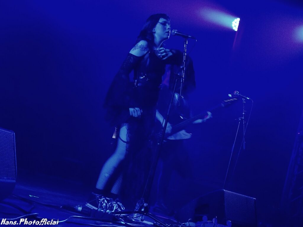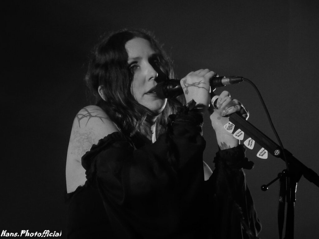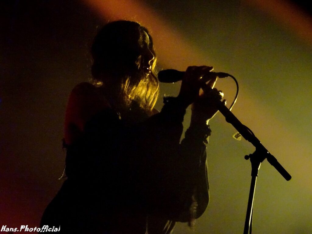 Waar Kælan Mikla wel eens uit een luchtig vaatje dreigde te tappen was het gedaan met lachen toen Chelsea Joy Wolfe met hoge hakken, lang zwart gewaad en haar drie bandleden Whispers In The Echo Chamber op ons loslieten. De opener van de nieuwe plaat die op één nummer na integraal gespeeld werd is vintage Chelsea Wolfe. Donkere logge en harde industrial-drumsalvo’s en vette gitaren vormden zo al meteen een schril contrast met de hoge wonderbaarlijke prachtstem van Chelsea. Dit nummer verenigde fans van Nine Inch Nails met die van Tool.