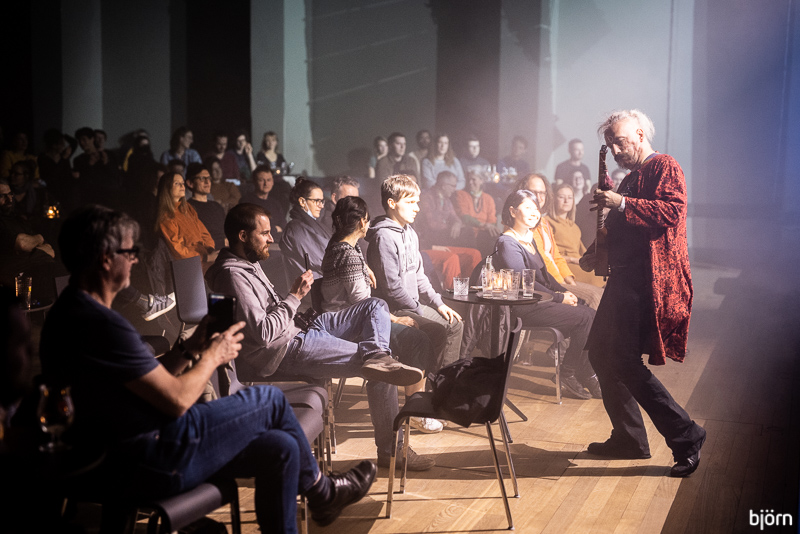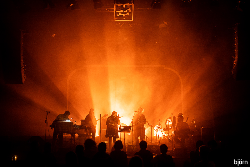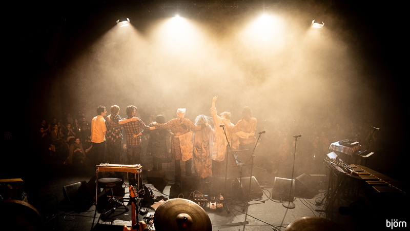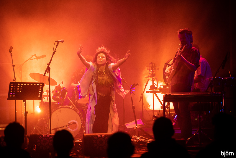Simurg is een conceptplaat pur sang wat betekent dat je ze het best in haar geheel oppeuzelt. Dat werkt uitstekend als dat live gebeurt en je omzwachteld wordt door klank, beeld en een prachtig uitgekiende lichtshow. Dat werkt nog beter als het podium bevolkt wordt door een keure aan virtuoze muzikanten wiens individuele bijdragen versmelten tot een meeslepend, broeierig geheel. Het spelplezier van Wim Segers, Falk Schrauwen, Bart Vervaeck, Filip Vandebril (verving Mathias Debusschere), Frederik Van den Berghe en Murat Ertel gutste van het podium, recht de zaal in. Toch was het vooral het ongeremde enthousiasme waarmee Esma Ertel en Hindi Zahra – al dan niet (buik)dansend – over het podium flaneerden wat maakte dat blijven zitten tijdens dit stomende optreden een beetje een straf werd.