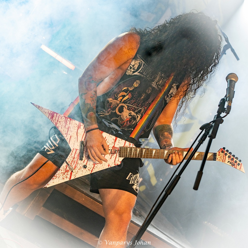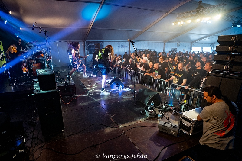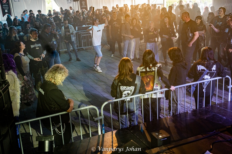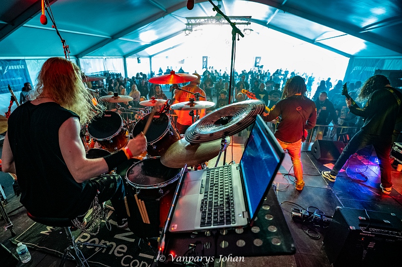 Dan was het tijd voor iets compleet anders. De Brugse band Your Face Offends Me bewees meteen dat ze op elke podium, en ernaast , thuis horen. Leadzanger Ward, die bij momenten deed denken aan het Duracell-konijn, overstroomde het podium met energie. Na enkele minuten was het podium te klein en ging hij met zij action-cam het volk in. Metal konden we dit niet noemen maar de meeste aanwezigen konden dit optreden best smaken.