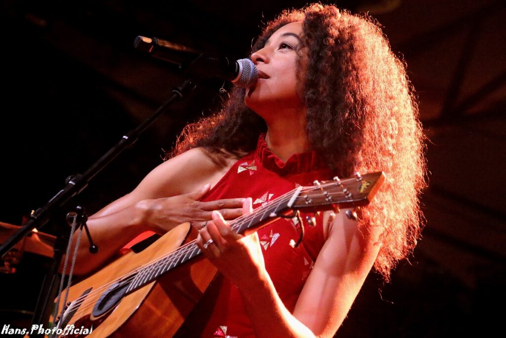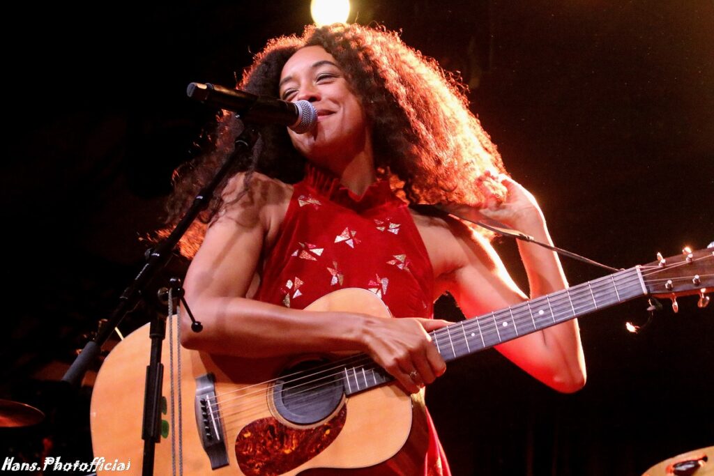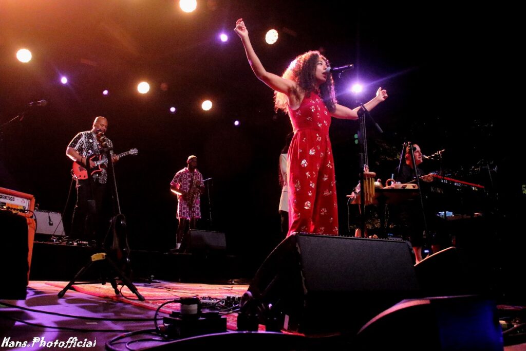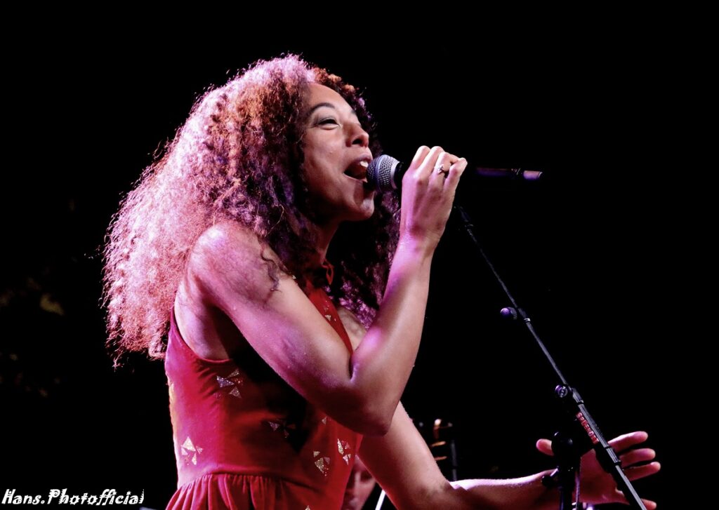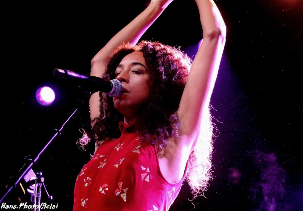 Corinne Bailey-Rae stond geboekt tot half 11 en we waren benieuwd hoe ze haar episch album Black Rainbows zou integreren in de set. Corinne kwam in een beeldig lang rood kleed op en haar weelderige haardos en sprekende lieve ogen vielen meteen op. Brenda had daar al een allusie op gemaakt. “We ontmoetten Corinne tijdens de soundcheck, en jongens toch, wat een lieve vrouw!” De ‘Rae’ in haar naam is eigenlijk die van haar overleden echtgenoot (2008, incident met een overdosis methadon en alcohol). Op twee jaar tijd wereldberoemd worden én je partner op zo een manier verliezen, het moet wat met haar gedaan hebben. Misschien een verklaring waarom The Heart Speaks In Whispers slechts in 2016 uitkwam. Zeven jaar later was er dan Black Rainbows.