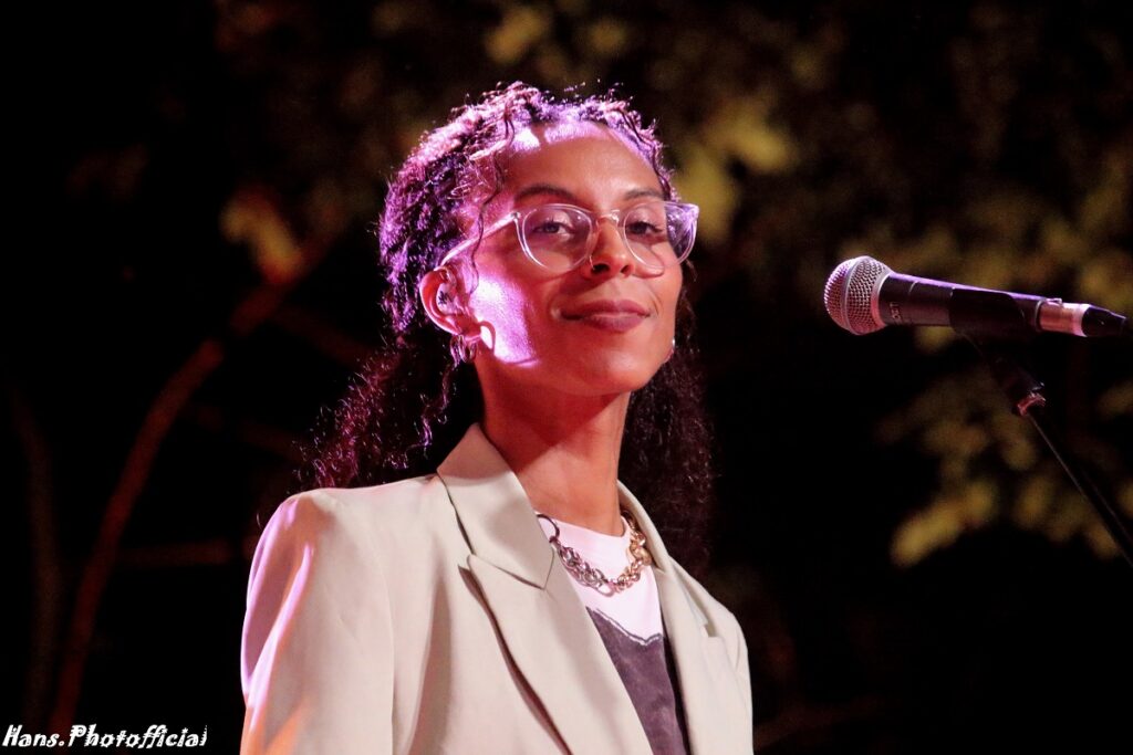 Like A Star, haar eerste nummer ooit op plaat, volgde in een bloedmooie versie. Op het einde van het nummer riep ze iemand naar voor wie ze al een tijdje in de gaten had. Het was iemand die een tekst op zijn gsm-scherm had getikt: ‘Please play Green Aphrodisiac’. Corinne draaide zich om en vroeg haar band of ze dit zagen zitten. Die knikten. De geluidstechnicus stond sprakeloos met de handen te draaien als in ‘geen idee, mag dit, eh ja zeker?’. Een lang uitgesponnen versie van ruim tien minuten werd op geniale wijze afgerond met een heuse ‘fade out’ waarin wij moesten meezingen en we dan in groep steeds zachter zongen. Corinne Bailey-Rae speelde op deze manier zomaar eventjes drie kwartier langer dan gepland. Dit soort avonden zijn er om te koesteren. Corinne Bailey-Rae is om te koesteren. Hoe we het uiteindelijk vonden? Verder dan “wow” komen we niet meer. Sprakeloos zijn mag na zo een avondje Rivierenhof.